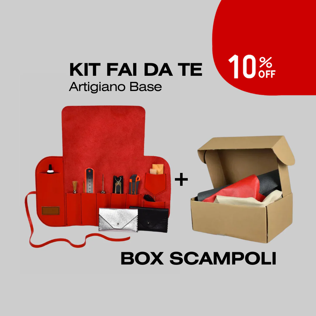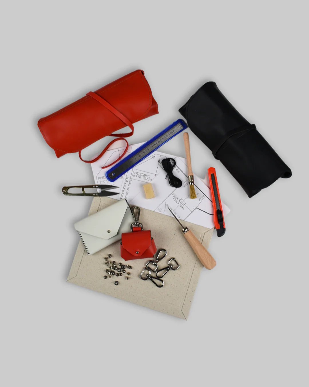 Regalati un’esperienza unica!Immergiti nell’arte della lavorazione della pelle con il nostro KIT e impara a realizzare il tuo primo accessorio artigianale.Potrai scegliere tra il KIT Base e il KIT Pro, e se dopo una prima esperienza avrai ancora voglia di creare, potrai acquistare la nostra Box Scampoli o nuovi cartamodelli.