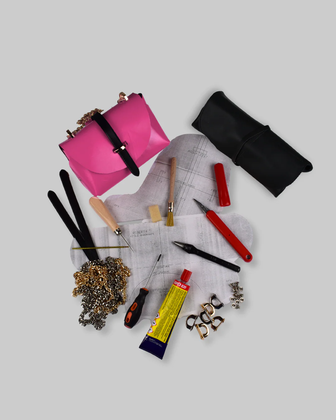 Per chi cerca un’esperienza più completa.Con questo KIT potrai esprimere a pieno la tua creatività avendo la possibilità di realizzare una tipologia di borsette in pelle.